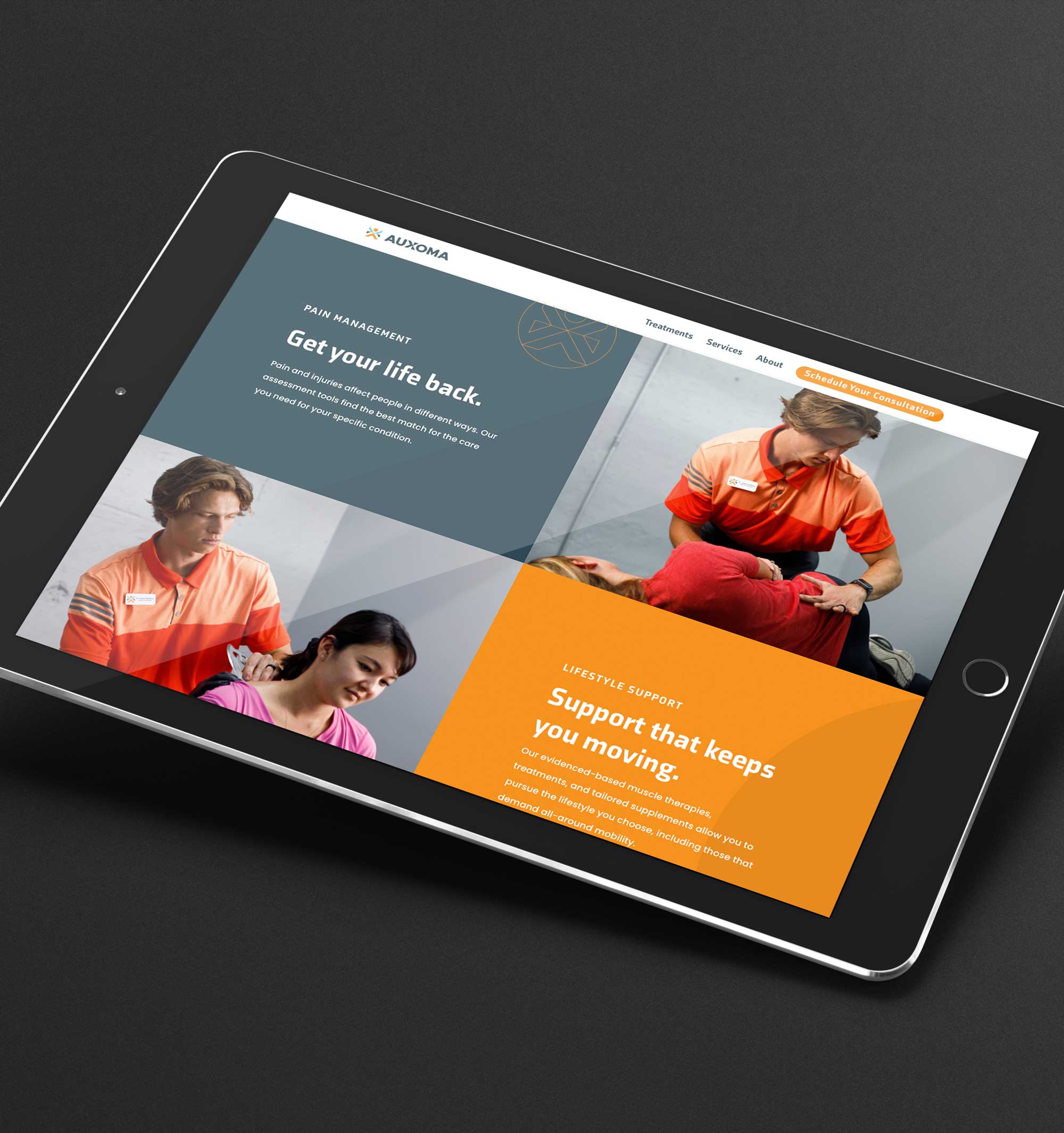 Auxoma’s mission is summed up in their name – from the roots of auxiliary which means “to help or support,” and soma which is Greek for “whole body.” Auxoma works to support its clients in achieving pain-free living with increased mobility throughout the whole body.